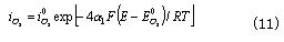 為CO的交換電流密度;a為CO氧化反應(yīng)的電荷傳遞系數(shù)。——— 在平衡條件下,上述兩反應(yīng)的電流密度相等,所以有