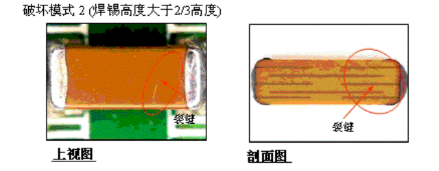- 貼片式陶瓷電容的內(nèi)部裂縫可能導(dǎo)至短路風(fēng)險。