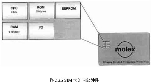 SIM卡的內(nèi)部硬件與普通的IC卡類似,是由CPU、ROM、RAM和EEPROM等部件組成的完整單片計(jì)算機(jī)(圖2.2.2),生產(chǎn)廠商已經(jīng)在每一張卡 內(nèi)存入了廠商代號、生產(chǎn)串號、卡的資源配置數(shù)據(jù)等基本參數(shù),并為卡的正常工作提供了適當(dāng)?shù)能浻布h(huán)境。它與手機(jī)內(nèi)其它部份的物理界面有:數(shù)據(jù)線 (DATA)或串行輸入/輸出(I/O)、復(fù)位線(RST)、時(shí)鐘(CLK)、編程電壓(VPP)、電源(VCC)和地(GND)。這些都需要通過連接器同機(jī)內(nèi)其它部份相互連接。