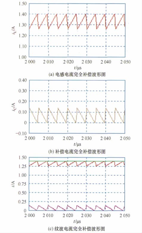 若選擇電路元器件參數(shù)使得k = 1,則iC = - ir,實(shí)現(xiàn)了電感紋波電流的全補(bǔ)償。