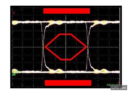 通過在示波器的垂直軸對數(shù)字信號進行反復采樣、同時采用相應數(shù)據(jù)率對水平時間掃描進行觸發(fā)來生成眼圖。所獲得的圖形看上去象眼睛,如圖1所示。“眼睛”越大,數(shù)據(jù)完整性越高。通常采用模板(mask)來對可接受的信號質(zhì)量進行定義。這模板由“眼睛”中間的六角形和“眼睛”上、下的矩陣組成。如果測得的信號跡線穿越模板的邊線,那么信號質(zhì)量就不可接受。USB2.0信號模板規(guī)范由USB應用者論壇(USBIF,www.usb.org)提供,可參見USB2.0版規(guī)范第7.1.2.2章節(jié)。圖1中顯示了帶有詳細臨界點的眼圖。