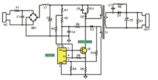 1. 基于最新的LED專用驅(qū)動(dòng)芯片AP3766,采用原邊控制方式,無(wú)須光耦和副邊電流控制電路,實(shí)現(xiàn)隔離恒流輸出,電路結(jié)構(gòu)簡(jiǎn)單。通過(guò)電阻R5檢測(cè)原邊電 流,控制原邊電流峰值恒定,同時(shí)控制開關(guān)占空比,保持輸出二極管D1的導(dǎo)通時(shí)間和整個(gè)開關(guān)周期時(shí)間比例恒定,實(shí)現(xiàn)了輸出電流的恒定。
