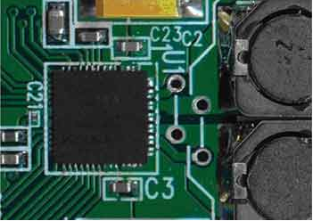 與裸露焊盤相接的敷銅塊應(yīng)該用多個過孔連到PCB背面的其他敷銅塊上,并應(yīng)該在滿足系統(tǒng)信號走線的要求下具有盡可能大的面積。加寬所有與器件的連線,這將有益于改善系統(tǒng)的散熱性能。雖然IC的引腳并不是主要的散熱通道,但實際應(yīng)用中仍然會有少量發(fā)熱。圖3所示的PCB中,寬連線將D類放大器的輸出與圖右側(cè)的兩個電感相連。在這種情況下,電感的銅芯繞線也可為D類放大器提供額外的散熱通道。雖然對整體熱性能的改善不到10%,但這樣的改善卻會給系統(tǒng)帶來兩種截然不同的結(jié)果—系統(tǒng)具備較理想的散熱或出現(xiàn)較嚴重的發(fā)熱。