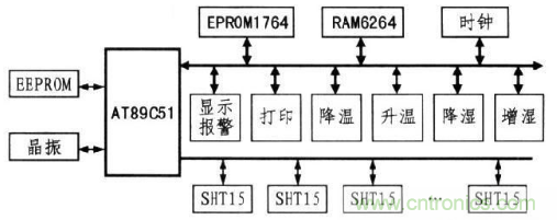 AT89C51循環(huán)實(shí)時(shí)選通多個(gè)SHTl5,使其檢測(cè)溫度值和相對(duì)濕度值.然后讀出數(shù)據(jù)值并顯示此時(shí)的數(shù)據(jù)值.當(dāng)相對(duì)濕度超過(guò)70%時(shí),單片機(jī)控制降濕機(jī)開(kāi)始工作.若相對(duì)濕度低于40%,則增濕機(jī)開(kāi)始工作;當(dāng)溫度超過(guò)30℃時(shí),降溫機(jī)開(kāi)始工作,當(dāng)溫度低于一12℃時(shí),升溫機(jī)開(kāi)始工作,每循環(huán)3次,打印1次溫,濕度值報(bào)表。
