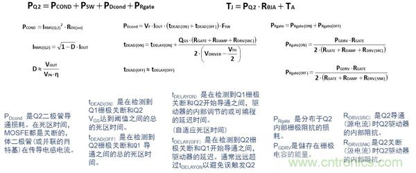 對于高頻應(yīng)用(>MHz),控制管Q1的選用應(yīng)針對降低開關(guān)損耗進(jìn)行優(yōu)化。Q1損耗的計(jì)算公式如下: