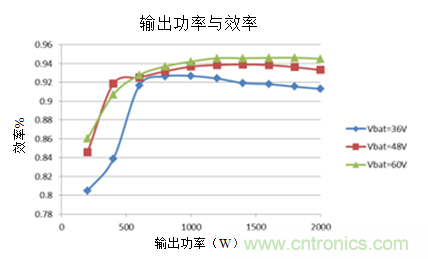 參考設(shè)計(jì)在降壓模式(作為充電器)下的峰值效率為94%,在升壓模式(放電期間)為95%,平均效率高于93%。這種高放電效率為電池提供更長的運(yùn)行時(shí)間。在36V至60V的寬輸入電壓范圍內(nèi),使用電流饋電全橋級在放電模式下實(shí)現(xiàn)高效率,其優(yōu)化隔離變壓器的設(shè)計(jì),以繞組中的最小化均方根(RMS)電流,同時(shí)最小化通過輸入電容器的紋波電流。