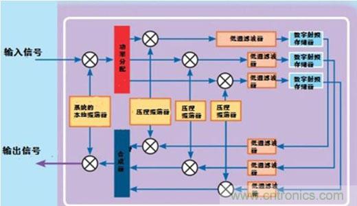 如下圖所示,干擾機系統(tǒng)將感興趣的頻率范圍轉(zhuǎn)換為多個窄帶數(shù)字射頻存儲器覆蓋的頻率范圍。數(shù)字射頻存儲器系統(tǒng)的輸入信號自動分配給每個數(shù)字射頻存儲器。