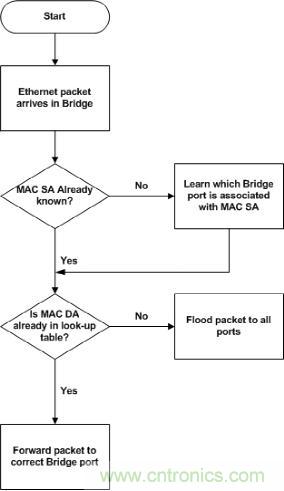 在圖1中,如果傳入幀的源地址(SA)以前沒有記錄,則將其與幀的傳入端口號(hào)一起添加到地址數(shù)據(jù)庫(kù)中。如果目標(biāo)地址(DA)已經(jīng)存在于網(wǎng)橋的查找表中,則數(shù)據(jù)包會(huì)相應(yīng)地轉(zhuǎn)發(fā),否則幀將被泛洪處理。多年來,管理L2所用協(xié)議的IEEE標(biāo)準(zhǔn)(如802.1 MAC橋、VLAN和基于端口的網(wǎng)絡(luò)訪問控制標(biāo)準(zhǔn))都集中在以太網(wǎng)幀的前16個(gè)字節(jié)。這些標(biāo)準(zhǔn)也在不斷發(fā)展,最近增加的包括以太網(wǎng)音視頻橋接技術(shù)(AVB)和時(shí)間敏感網(wǎng)絡(luò)標(biāo)準(zhǔn)(如802.1AS)。特別是,在汽車環(huán)境中對(duì)確定性網(wǎng)絡(luò)的需求正變得越來越急迫,以確保網(wǎng)絡(luò)中及時(shí)和可靠的數(shù)據(jù)傳輸。將所有ECU鎖定在單個(gè)主時(shí)鐘源并保持AV內(nèi)容質(zhì)量只是其中兩個(gè)例子,更多增強(qiáng)的功能還在引入以便于檢查OSI 3層信息,例如IPv4 / IPv6數(shù)據(jù)包優(yōu)先級(jí)和IPv4 / IPv6偵聽。