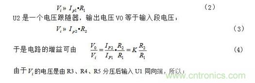 U1構(gòu)成一個(gè)負(fù)反饋放大器,其同相輸入端和反相輸入端的電壓應(yīng)近似相等,滿足: