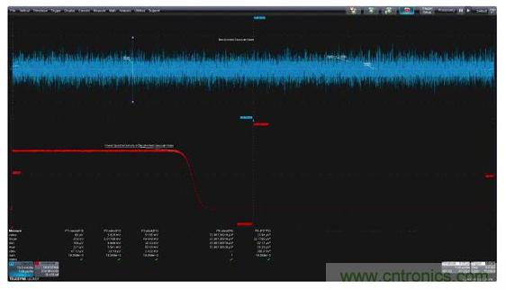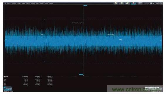 測量參數(shù)可以應(yīng)用于圖2中的噪聲波形,以深入了解這種噪聲信號的特性。圖中顯示的參數(shù)有平均值、標(biāo)準(zhǔn)偏差和峰峰值。顯示器下方顯示了讀取的參數(shù)值。