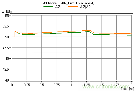 圖5圖6對比,發(fā)現(xiàn)未處理之前阻抗的跳躍很明顯,隔層處理后的阻抗改善很多,幾乎沒有任何階躍與不連續(xù)。