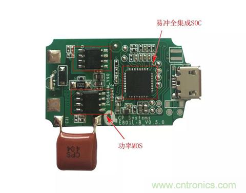 再來看另外一種案例:SoC方案,以易沖無線的全集成SoC無線充電器方案“EC8000系列”為例,如下圖。
