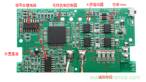 這種SoC方案下,PCB上只有一顆大芯片,和兩個MOS管,相當(dāng)簡潔。SOC內(nèi)部集成了無線充電驅(qū)動,H橋驅(qū)動器,運放,內(nèi)置溫度保護功能等,一顆芯片實現(xiàn)所有功能,可有效控制成本和精簡生產(chǎn)流程。