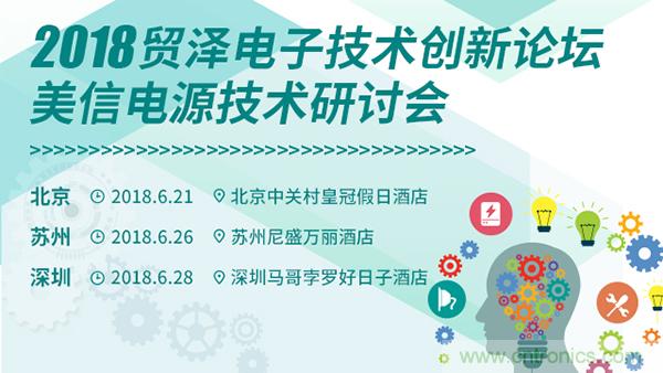【導讀】貿澤電子(Mouser Electronics) 宣布攜手美信半導體,于6月21日北京中關村皇冠假日酒店、6月26日蘇州尼盛萬麗酒店、6月28日深圳馬哥孛羅好日子酒店,舉辦“2018貿澤電子技術創(chuàng)新論壇-美信電源技術研討會”。