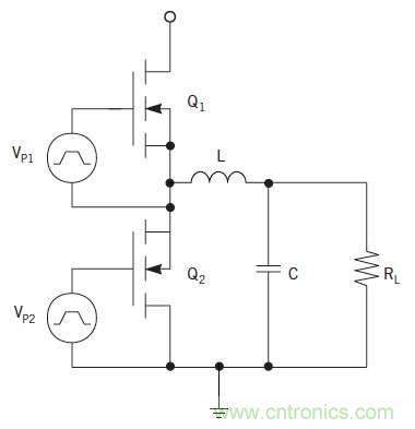 圖1:降壓轉(zhuǎn)換器拓?fù)浣Y(jié)構(gòu)使用兩個(gè)n溝道MOSFET。Q 1是開(kāi)關(guān)或控制MOSFET,Q 2是同步整流器。L和C包括輸出濾波器,R L是負(fù)載電阻。