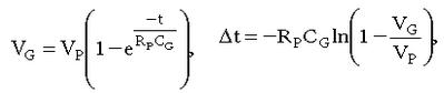在這些等式中,V G是等效柵極電壓,V P是柵極驅(qū)動(dòng)脈沖幅度,R P是柵極驅(qū)動(dòng)輸出阻抗,C G是柵極電容。