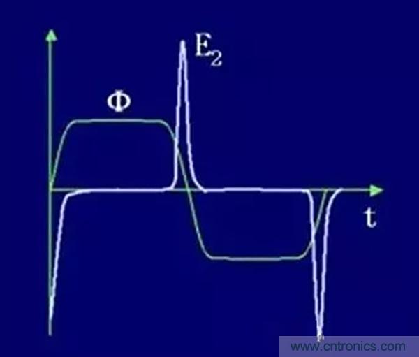 鐵芯飽和,使隨時(shí)間變化的磁通波形變?yōu)槠巾敳?。在波形上升和下降處,因磁通急劇變化在二次繞組內(nèi)所感應(yīng)的電勢(shì)可達(dá)幾千伏甚至更高,對(duì)設(shè)備和人員是極其危險(xiǎn)的。