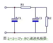 使用兩個(gè)電容和一個(gè)電阻組成RC濾波電路,又稱π型RC濾波電路。見(jiàn)圖2-3-27所示。這種濾波電路由于增加了一個(gè)電阻R1,使交流紋波都分擔(dān)在R1上。R1和C2越大濾波效果越好,但R1過(guò)大又會(huì)造成壓降過(guò)大,減小了輸出電壓。一般R1應(yīng)遠(yuǎn)小于R2。