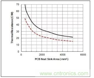 (2)增加PCB板覆銅的厚度可以明顯的降低熱阻,但是厚覆銅會增加PCB的成本。