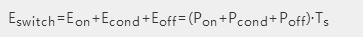 MOS管主要損耗:開關(guān)損耗,導(dǎo)通損耗,截止損耗,還有能量損耗,開關(guān)損耗往往大于后者,小部分能量體現(xiàn)在“導(dǎo)通狀態(tài)”,而“關(guān)閉狀態(tài)”的損耗很小幾乎為0,可以忽略不計(jì)。具體使用下面公式計(jì)算: