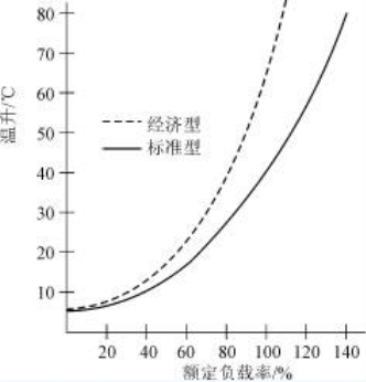 環(huán)形變壓器的溫升特性曲線示于圖6,從圖6 可看出環(huán)形變壓器的溫升是較低的,對標準型系列,即便是過載120%,溫升也不超過70℃。