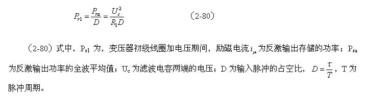 (2-79)式中,Pra為反激輸出功率的全波平均值,Uc為濾波電容兩端的電壓,R1為負(fù)載電阻。
