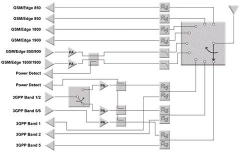 隨著多頻段架構(gòu)的普及,對功率放大器和相關(guān)濾波器的數(shù)量提出了嚴(yán)格的要求。事實上,對功率放大器的技術(shù)要求沒有變化,但手機設(shè)計需要使用更多的功率放大器。因此真正改變的,是需要一種高效率方法,將所有射頻信號傳送給天線──即單片開關(guān)。