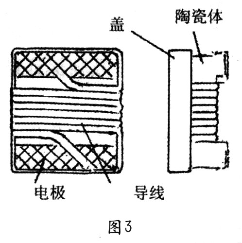[page]還有一種片式繞線電感是采用H型陶瓷芯,經(jīng)過(guò)繞線、焊接、涂復(fù)、環(huán)氧樹脂灌封等工藝制成,見圖3,由于電極已預(yù)制在陶瓷芯體上,制造工藝更加簡(jiǎn)單,而且可以進(jìn)一步小型化。這類電感的電感量較小,但自諧振頻率高(通常為5~6GHz,最高達(dá)12.5GHz),更適合高頻使用。