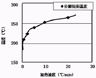 圖6有機(jī)外殼分解結(jié)束溫度與加熱溫度的關(guān)系