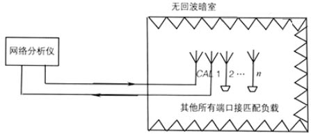有源輸入回波損耗區(qū)別于普通的回波損耗的地方在于它是在各個(gè)單元端口均有輸入信號(hào),且是形成不同方向波束的情況下的回波損耗,因此將它叫作有源輸入回波損耗,測(cè)量示意如圖2所示。