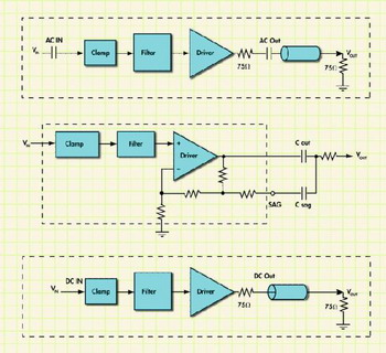 因此,直流耦合輸出信號可能是最劃算和直接的視頻信號耦合方法。此外,直流耦合還消除了輸出信號被兩次交流耦合的問題:一次在濾波器/驅(qū)動器的輸出端,另一次在媒體設(shè)備的輸入端。