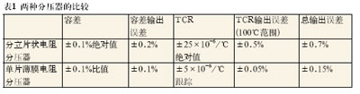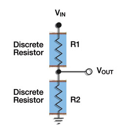 通過選擇單片襯底上的高精度薄膜分壓器,設(shè)計(jì)人員可以確保分壓器中的電阻元件具有非常相似的電氣特性,并在溫度和時(shí)間變化時(shí)實(shí)現(xiàn)很好的跟蹤。在公用襯底上的材料和處理過程的相似性確保了分壓器能夠在所有比值和環(huán)境下更為穩(wěn)定,且性能更好。