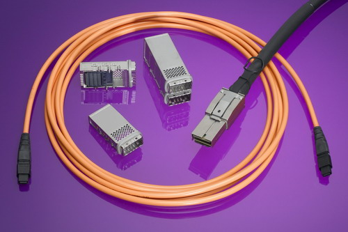 有源光纜組件:CXP 有源光纜(AOC)組件和可插拔收發(fā)器模塊采用了12個(gè)發(fā)射(TX) 和 12 個(gè)接收 (RX)通道,在多模光纖上提供每通道10 Gbps的數(shù)據(jù)速率,傳輸距離長達(dá)1km (3280.840’)。光纜終端的光電轉(zhuǎn)換由包含了專門針對(duì)低功耗和高可靠性而優(yōu)化的光引擎的集成式收發(fā)器模塊來完成。