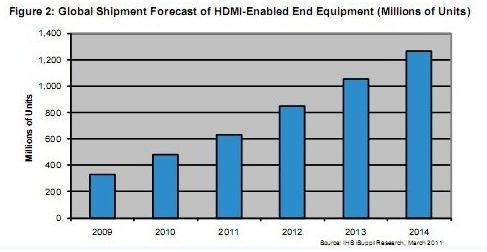 - HDMI 2011年全球出貨量增長到6.291億個(gè)