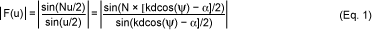 除了改變波瓣的寬度,通過對連續(xù)單個天線的信號設(shè)定固定的相位延遲α(圖3),還可以實現(xiàn)主波瓣在x–y平面內(nèi)的旋轉(zhuǎn)。天線陣列的輻射圖正比于天線陣列系數(shù)F(u):