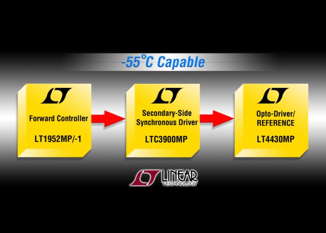 凌力爾特公司 (Linear Technology Corporation) 推出 LT1952/-1、LTC3900 和 LT4430 的高可靠性 (MP 級) 版本。這些器件合起來構(gòu)成一個高效率 (高達(dá) 95%) 同步整流隔離式正向轉(zhuǎn)換器,該轉(zhuǎn)換器規(guī)定在 -55°C 至 125°C 的節(jié)溫范圍內(nèi)工作,并在這個溫度范圍內(nèi)進(jìn)行了生產(chǎn)測試。LT1952/-1 是一款具有源變壓器復(fù)位功能的單開關(guān)正激式控制器,可向副端的 LTC3900 同步整流驅(qū)動器提供定時信號。LT4430 是一個具精準(zhǔn)基準(zhǔn)電壓的副端光驅(qū)動器,構(gòu)成了嚴(yán)格調(diào)節(jié)的隔離型正激式轉(zhuǎn)換器電路。LTC3900 和 LT4430 的最高工作節(jié)溫規(guī)定為 150°C。這種類型的正向轉(zhuǎn)換器設(shè)計(jì)非常適用于 12V、24V 和 48V 標(biāo)稱輸入電壓,這類輸入電壓常見于電信、數(shù)據(jù)通信、工業(yè)和軍事 / 航天應(yīng)用。