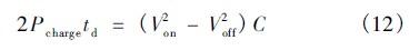 由上,采用超級(jí)電容電壓滯環(huán)比較控制法,超級(jí)電容向蓄電池充電一次最短時(shí)間為td,根據(jù)能量守恒有: