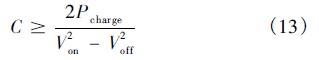 在本系統(tǒng)中光伏控制器和采用boost電路。由式(7)可得根據(jù)光伏電池的弱光下最大功率點(diǎn)工作電壓計(jì)算Von上限。根據(jù)蓄電池浮充電壓及超級(jí)電容的漏電流確定Voff。最后可得超級(jí)電容的容量: