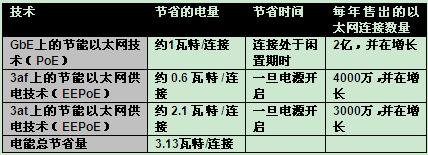 特別需要指出的是,結(jié)合節(jié)能以太網(wǎng)技術(shù)和節(jié)能以太網(wǎng)供電技術(shù)的參考交換機系統(tǒng)產(chǎn)品,證明可以節(jié)省大量的電能。請查看以下表格: