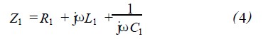 圖4中,閱讀器的發(fā)送器出口產(chǎn)生高頻電壓u2,接收器直接與天線線圈L1連接。串聯(lián)諧振電路的總阻抗Z1為各項(xiàng)單阻抗之和,即:
