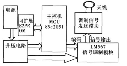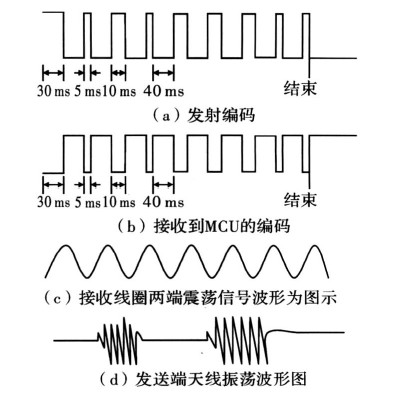 本系統(tǒng)的閱讀器可在6cm范圍內(nèi)識(shí)別應(yīng)答器的有無(wú),若有應(yīng)答器在監(jiān)測(cè)范圍內(nèi),則給出明確的指示并讀取應(yīng)答器預(yù)設(shè)的4位編碼,然后顯示;另外,應(yīng)答器部分還可以通過(guò)開(kāi)關(guān)設(shè)置4位編碼在閱讀器識(shí)別范圍內(nèi)送出編碼信號(hào)。同時(shí)閱讀器還具有對(duì)應(yīng)答器的編碼進(jìn)行寫入的功能,由應(yīng)答器接收并儲(chǔ)存。設(shè)計(jì)中重點(diǎn)是保證正確率,可以從軟件上增加校驗(yàn)碼來(lái)提高無(wú)線傳輸?shù)目煽柯省?/p>
