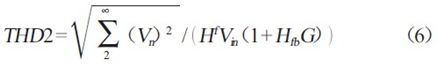 比較式(2)和式(6)可以看出,具有反饋環(huán)路閉環(huán)系統(tǒng)THD 為開(kāi)環(huán)系統(tǒng)THD 的1/(1+HfbG),即通過(guò)反饋結(jié)構(gòu)減小了系統(tǒng)的THD。