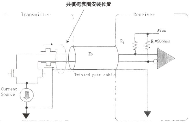 在以這類方式產(chǎn)生噪音的情況下,采用一個共模線圈來抑制噪音的方法是非常有效的,因為共模線圈可以抑制共模噪音,但對差分信號的影響很小。然而應(yīng)該注意的是,由于信號的頻率不同,外圍電路和元器件不相同,共模扼流圈的選擇和貼裝也不相同。