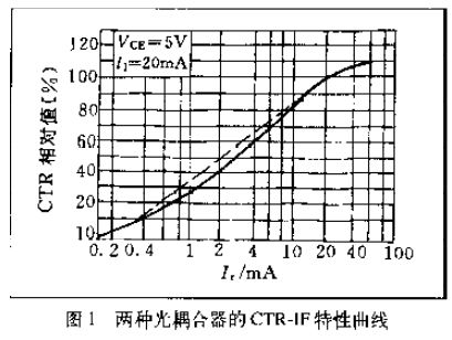 采用一只光敏三極管的光耦合器,CTR的范圍大多為20%~300%(如4N35),而PC817則為80%~160%,達林頓型光耦合器(如4N30)可達100%~5000%。這表明欲獲得同樣的輸出電流,后者只需較小的輸入電流。因此,CTR參數(shù)與晶體管的hFE有某種相似之處。線性光耦合器與普通光耦合器典型的CTR-IF特性曲線,分別如圖1中的虛線和實線所示。