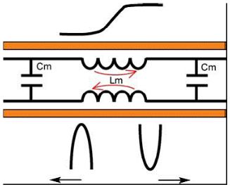 互阻抗沿著兩條走線呈均勻分布。串擾在數(shù)字門電路向串擾線打出上升沿時產(chǎn)生,并沿著走線進行傳播: