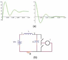 圖3 描述典型漏極寄生電感中的振蕩電流和電壓。注意在下一個開關(guān)周期開始之前電流和電壓波形趨向于零。儲存在電感器中的能量被轉(zhuǎn)換為相關(guān)寄生電阻的熱量。