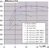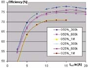 圖6所示效率是指不同頻率下負載電流和漏極電感的函數(shù)。此外,可觀察到如下結(jié)果: