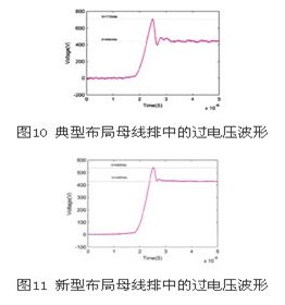 本節(jié)主要通過實(shí)驗(yàn)進(jìn)行典型布局下的母線排igbt過電壓波形與采用優(yōu)化后布局的比較,如圖9所示。實(shí)驗(yàn)使用80kva/400v變流器系統(tǒng)。圖10和圖11為實(shí)驗(yàn)得到的igbt過電壓波形,其中圖11為采用典型布局的h橋母線排中測得的igbt過電壓波形,圖11為采用優(yōu)化后布局的母線排中測得的igbt過電壓波形。由圖中可以看出新型母線排布局有良好的抑制過電壓效果。
