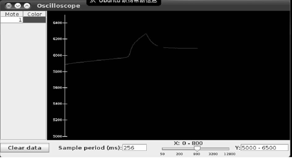 TinyOS是UC Berkeley開發(fā)的開放源代碼操作系統(tǒng),專為嵌入式無線傳感器設(shè)計(jì),操作系統(tǒng)基于構(gòu)件的架構(gòu)使得快速更新成為可能,而這又減小了受傳感器網(wǎng)絡(luò)存儲(chǔ)器限制的代碼長度。TinyOS的構(gòu)件包括網(wǎng)絡(luò)協(xié)議、分布式服務(wù)器、傳感器驅(qū)動(dòng)及數(shù)據(jù)識(shí)別工具。其良好的電源管理源于事件驅(qū)動(dòng)執(zhí)行模型,該模型也允許時(shí)序安排具有靈活性。因此對于整個(gè)無線傳感器網(wǎng)絡(luò)的驗(yàn)證采用TinyOS操作系統(tǒng),設(shè)計(jì)為兩個(gè)節(jié)點(diǎn),節(jié)點(diǎn)A負(fù)責(zé)采集溫度濕度數(shù)據(jù),然后將采集到的數(shù)據(jù)發(fā)送到另一個(gè)節(jié)點(diǎn)B,節(jié)點(diǎn)B接收到數(shù)據(jù)后,通過USB將數(shù)據(jù)傳輸?shù)絺€(gè)人電腦,并將該數(shù)據(jù)通過圖表顯示,如圖10所示。