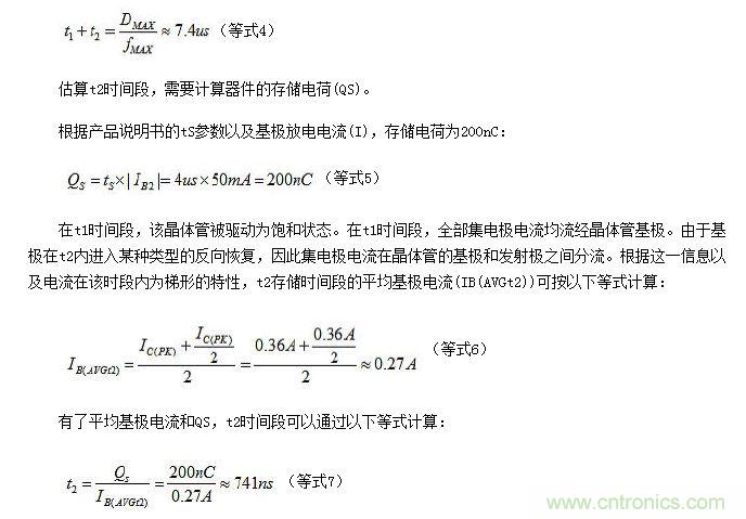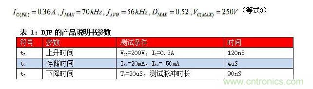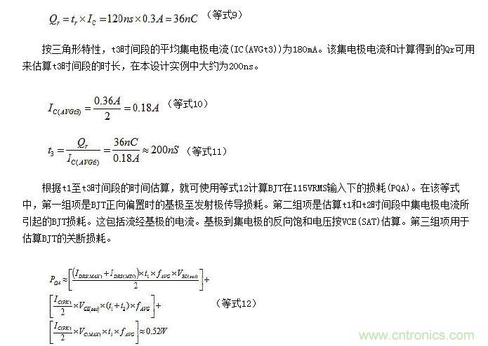集電極反向恢復(fù)電荷(Qr)數(shù)量可用來估算開關(guān)損耗時(shí)間段t3。根據(jù)BJT產(chǎn)品說明書,參數(shù)Qr的計(jì)算結(jié)果為36nC。